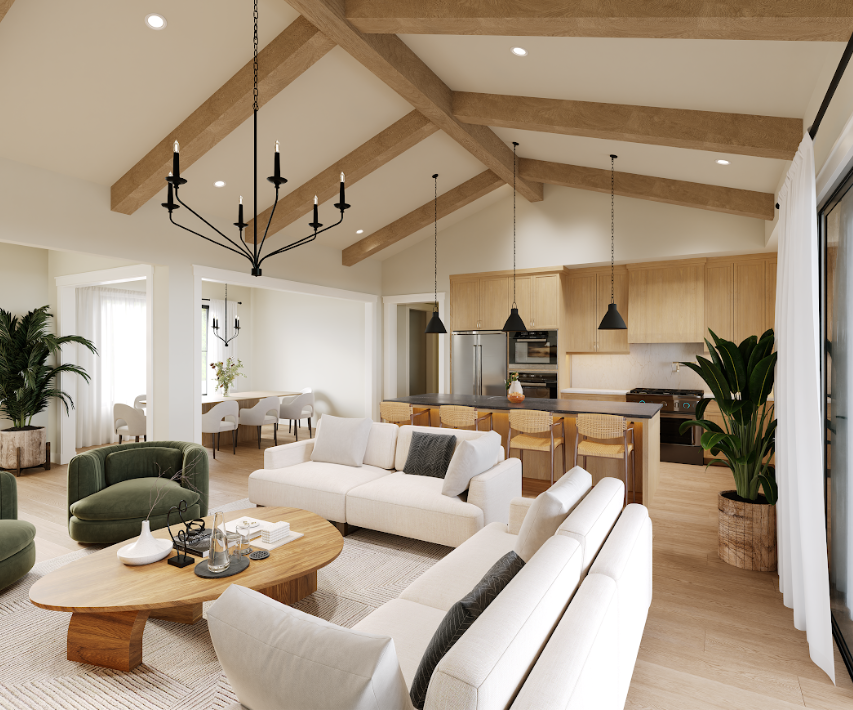Step into the Shasta, and you’ll find yourself welcomed by the breathtaking vaulted great room. With soaring ceilings adorned with exposed beams, this bright and airy space is perfect for both lively gatherings and quiet evenings at home. The gourmet kitchen flows seamlessly into this room, making it easy to whip up a delicious meal while staying connected with family and friends.